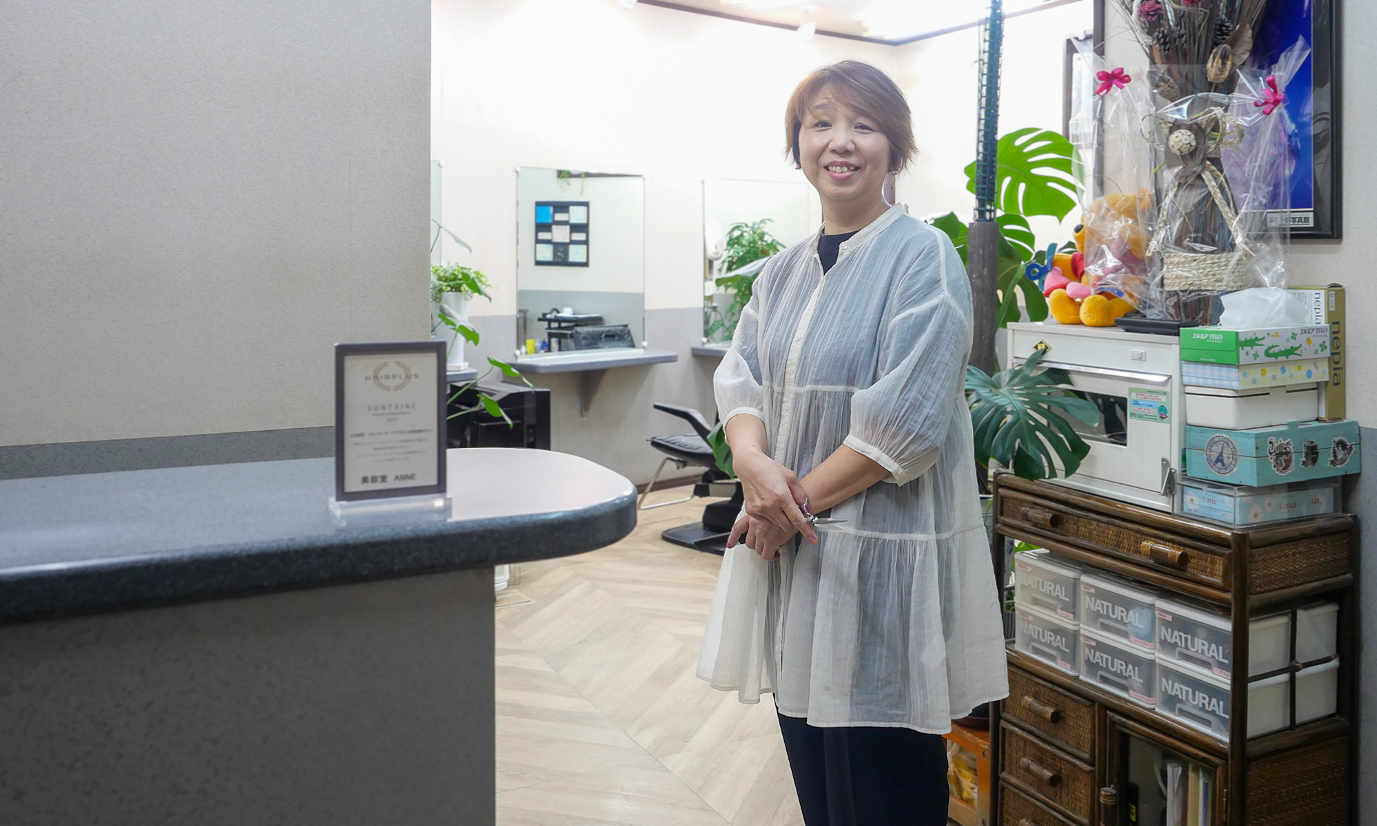 From an early age, I dreamed of working in the beauty industry. After training in Tokyo, I opened Hair Salon ANNE in November 1992 in the town I hold dear, Awa-Ikeda.